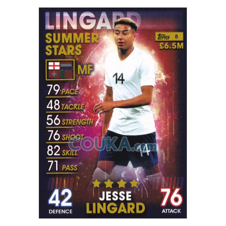 2018-2019 Topps Match Attax 101 Football Soccer Card #8 Jesse Lingard Summer Star England Topps101球星卡 林加德 夏星 英格兰
