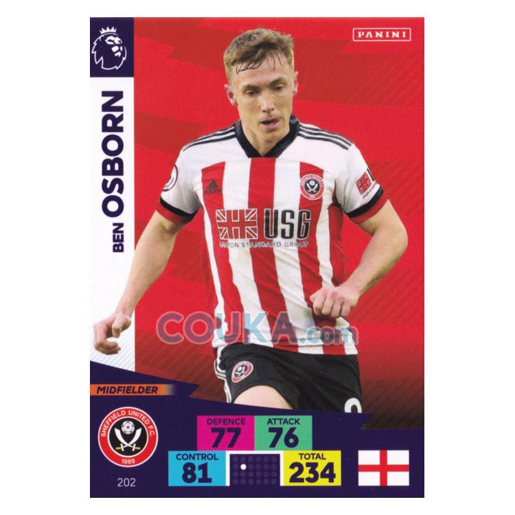 NUKOU寄售 2020-2021 Panini EPL English Premier League Adrenalyn XL Football Soccer Card #202 Ben Osborn Sheffield United Base card 帕尼尼英超球星卡 游戏版 本 奥斯博恩 谢菲尔德联 普卡 发布相似商品