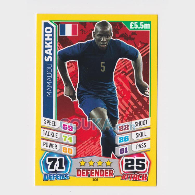 2014 Topps FIFA World Cup England Match Attax Football Soccer Card #106 Mamadou Sakho Base France Topps世界杯 英国版球星卡 马马杜 萨科 普卡 法国