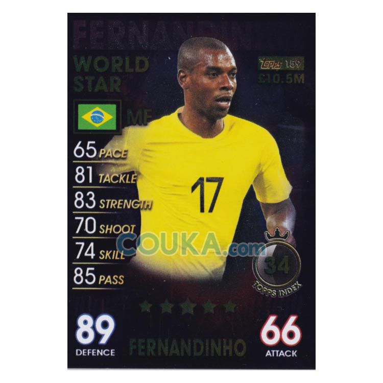 2018-2019 Topps Match Attax 101 Football Soccer Card #159 Fernandinho World Stars Brazil Topps101球星卡 费尔南迪尼奥 世界巨星 巴西