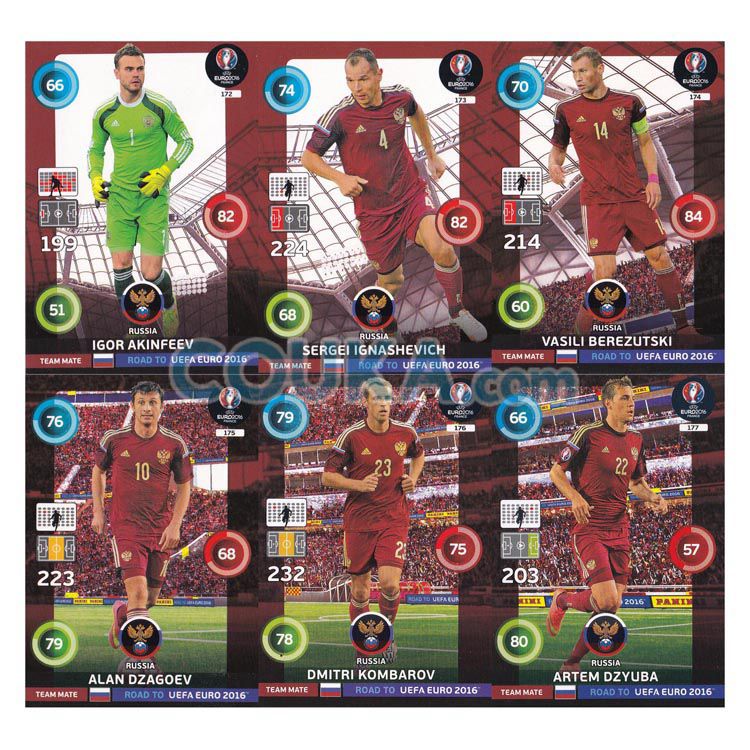 NUKOU寄售 2016 Panini Road to UEFA Euro 2016 Adrenalyn XL RT Football Soccer Card SET 套卡 Team Mate 6 CARDS Russia 帕尼尼通向2016欧洲杯预热通往2016欧洲杯之路球星卡 伊戈尔 阿金费耶夫 Igor Akinfeev/塞尔吉 伊格纳舍维奇 伊格纳谢维奇 Sergei Sergey Ignashevich/瓦西里 别列祖斯基 别列祖茨基 贝雷祖斯基 贝雷祖茨基 Vasili Berezutskiy/阿兰 扎戈耶夫 德萨戈耶夫 Alan Dzagoev/季米特里 孔巴罗夫 Dmitri Kombarov/阿尔捷姆 久巴 Artem Dzyuba 普卡 6张 俄罗斯 发布相似商品