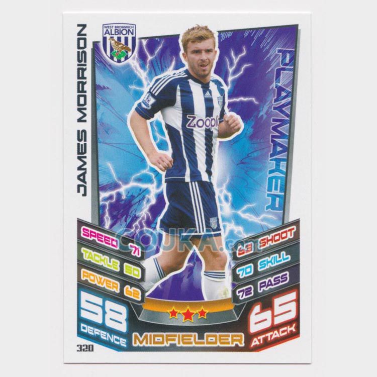 2012-2013 Topps EPL English Premier League Match Attax Football Soccer Card #320 James Morrison Base West Bromwich英超球星卡 詹姆斯 莫里森 普卡 西布朗