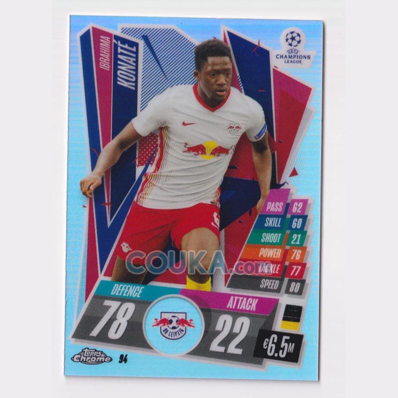 2020-2021 Topps Chrome UEFA Champions League UEFACL Match Attax Football Soccer Card #94 Ibrahima Konate Refractor Parallel Base RB Leipzig Topps欧冠Chrome游戏版球星卡 易卜拉希马 科纳特 平行 银折 闪卡 普卡 莱比锡红牛 发布相似商品