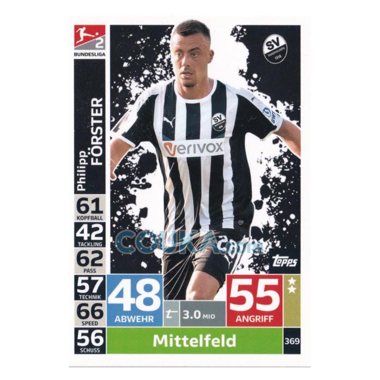 2018-2019 Topps German Fussball Bundesliga Match Attax Football Soccer Card #369 Philipp Forster Base SV Sandhausen德甲球星卡 福斯特 普卡 桑德豪森