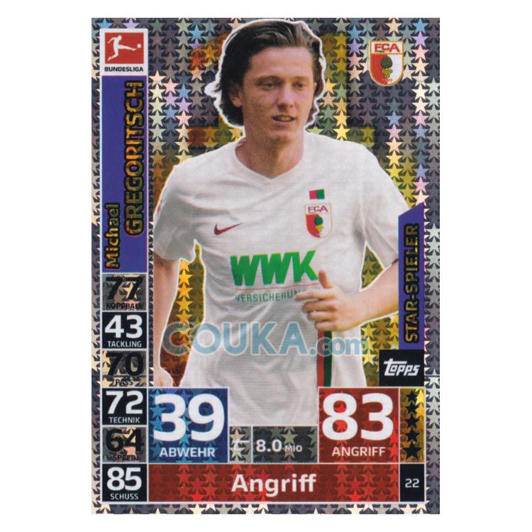 2018-2019 Topps German Fussball Bundesliga Match Attax Football Soccer Card #22 Michael Gregoritsch Star-Spieler Star-Player Augsburg德甲球星卡 格雷戈里奇 明星 奥格斯堡 发布相似商品