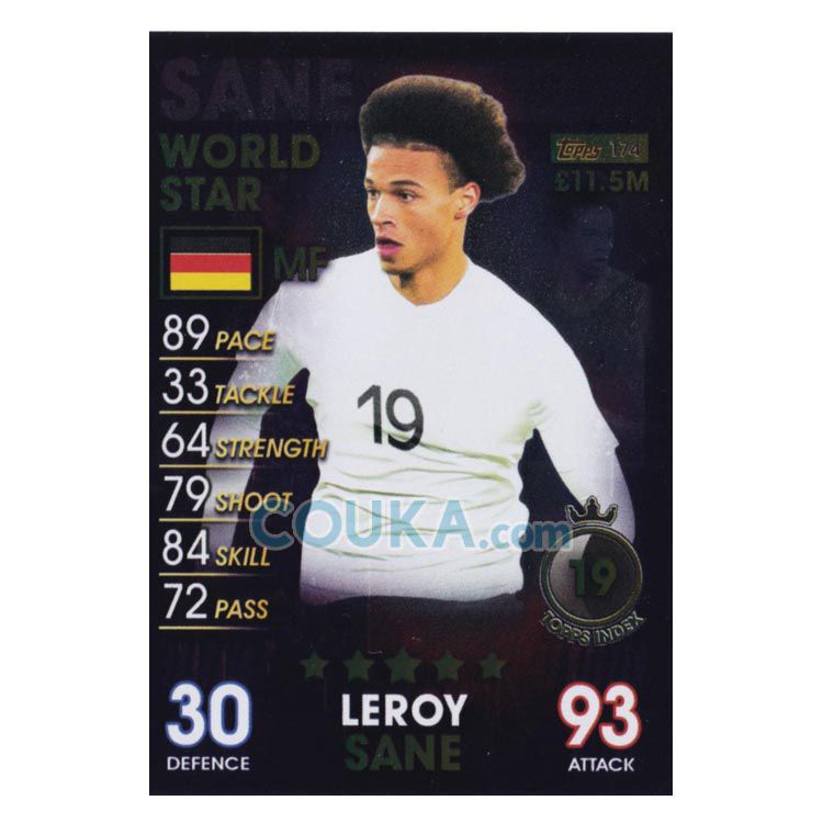 2018-2019 Topps Match Attax 101 Football Soccer Card #174 Leroy Sane World Stars Germany Topps101球星卡 萨内 世界巨星 德国