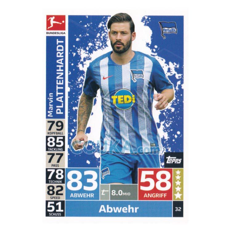 2018-2019 Topps German Fussball Bundesliga Match Attax Football Soccer Card #32 Marvin Plattenhardt Base Hertha Berlin德甲球星卡 普拉滕哈特 普卡 柏林赫塔 发布相似商品