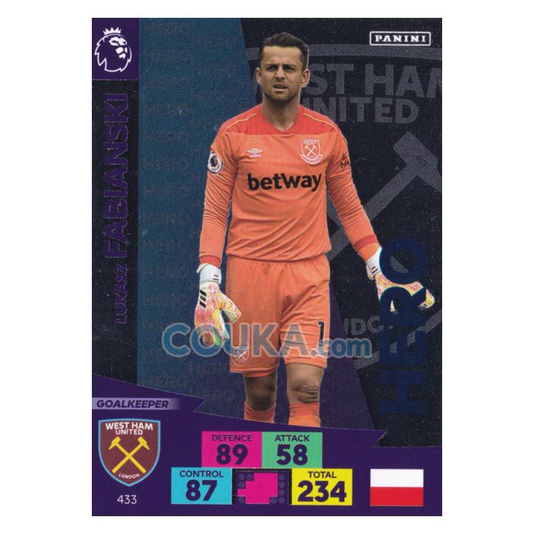 NUKOU寄售 2020-2021 Panini EPL English Premier League Adrenalyn XL Football Soccer Card #433 Lukasz Fabianski West Ham United Hero 帕尼尼英超球星卡 游戏版 法比安斯基 西汉姆联 英雄特卡 发布相似商品