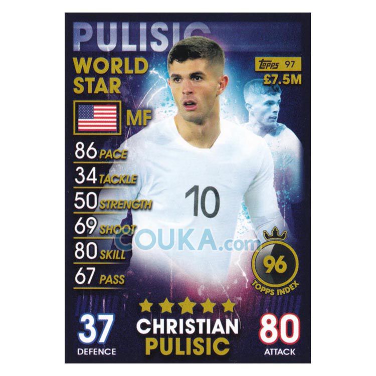 2018-2019 Topps Match Attax 101 Football Soccer Card #97 Christian Pulisic World Stars United States Topps101球星卡 普利西奇 世界巨星 美国