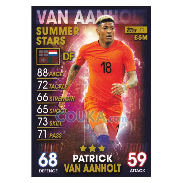 2018-2019 Topps Match Attax 101 Football Soccer Card #11 Patrick van Aanholt Summer Star Netherlands Topps101球星卡 范安霍尔特 夏星 荷兰