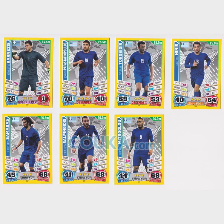 2014 Topps FIFA World Cup England Match Attax Football Soccer Card BASE SET Greece 7 CARDS Orestis Karnezis/Sokratis Papastathopoulos/Vasilis Torosidis/Sotiris Ninis/Georgios Samaras/Dimitris Salpingidis/Kostas Mitroglou Topps世界杯 英国版球星卡 希腊 7张 卡内西斯/帕帕斯塔托普罗斯/托罗西迪斯/尼尼斯/乔尔乔斯 萨马拉斯/萨尔皮吉迪斯/米特罗格卢 发布相似商品