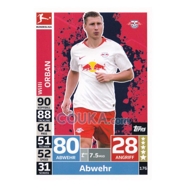 2018-2019 Topps German Fussball Bundesliga Match Attax Football Soccer Card #176 Willi Orban Base RB Leipzig德甲球星卡 奥尔班 普卡 莱比锡红牛