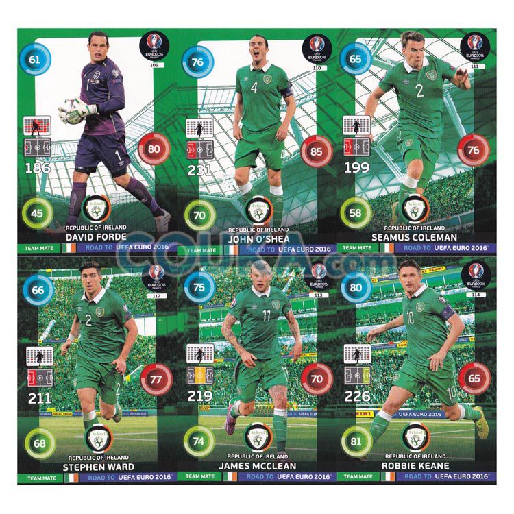 NUKOU寄售 2016 Panini Road to UEFA Euro 2016 Adrenalyn XL RT Football Soccer Card SET 套卡 Team Mate 6 CARDS Ireland 帕尼尼通向2016欧洲杯预热通往2016欧洲杯之路球星卡 戴维 福德 David Forde/约翰 奥谢 John O'Shea/谢默斯 科尔曼 Seamus Coleman/斯蒂芬 沃德 Stephen Ward/詹姆斯 麦克林 James McClean/罗比 基恩 Robbie Keane 普卡 6张 爱尔兰 发布相似商品