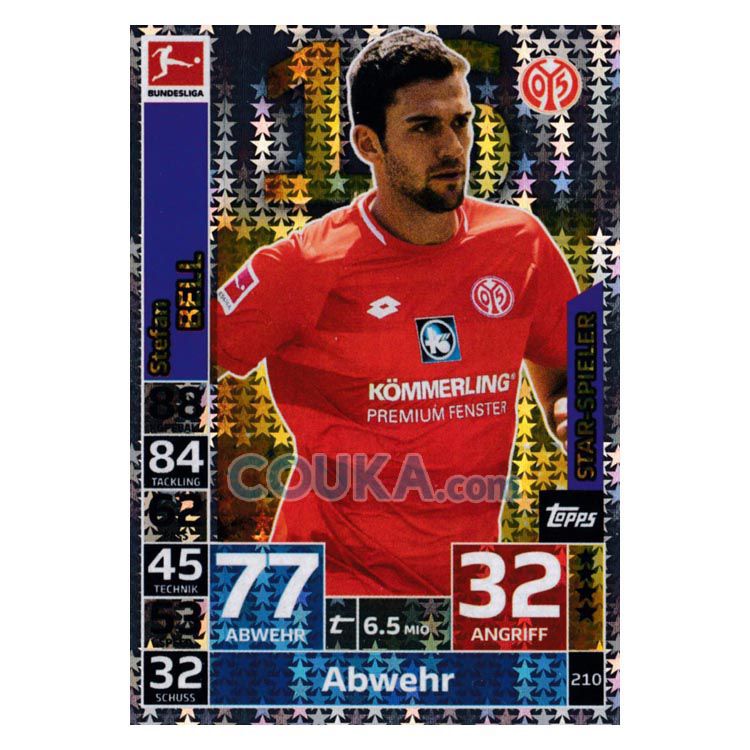 2018-2019 Topps German Fussball Bundesliga Match Attax Football Soccer Card #210 Stefan Bell Star-Spieler Star-Player FSV Mainz 05德甲球星卡 施特凡 贝尔 明星 美因茨 发布相似商品
