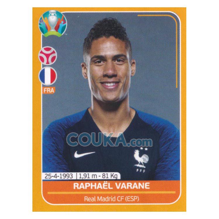 2020 Panini UEFA Euro Cup Preview 528 version Football Soccer Sticker FRA8 Raphael Varane France 帕尼尼欧洲杯球星贴纸 瓦拉内 法国