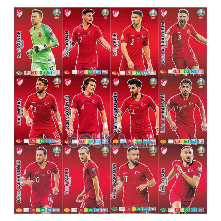 2020 Panini UEFA Euro Cup Preview Adrenalyn XL Football Soccer Card Base Set Turkey 12 CARDS Mert Gunok/Kaan Ayhan/Zeki Celik/Hasan Ali Kaldirim/Umut Meras/Caglar Soyuncu/Mahmut Tekdemir/Irfan Can Kahveci/Hakan Calhanoglu/Yusuf Yazici/Kenan Karaman/Cenk Tosun 帕尼尼欧洲杯球星卡 土耳其 12张 普卡 套卡 默尔特 古诺克 梅特 居诺克/卡恩 艾汉/泽科 赛力克/卡尔迪里姆/梅拉斯/瑟因居/马哈茂德/卡赫维奇/恰尔汗奥卢/亚兹奇/卡拉曼/根克 托松 发布相似商品