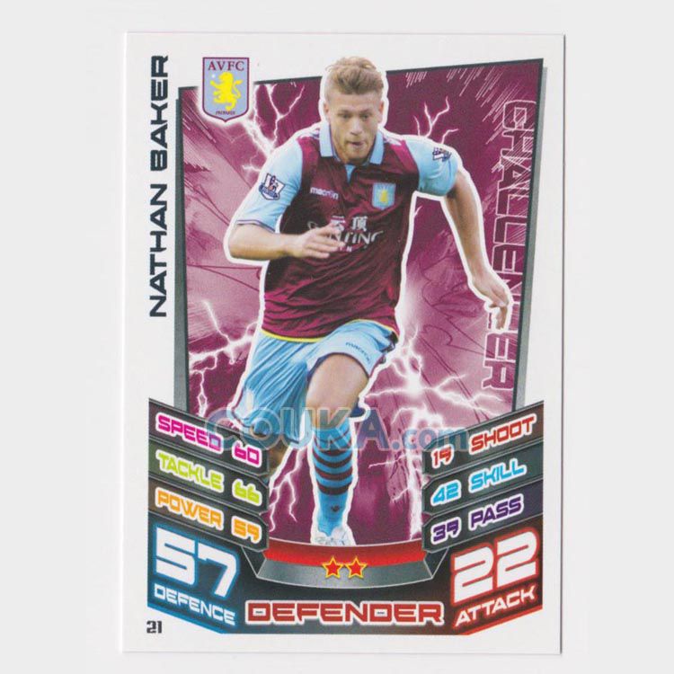 2012-2013 Topps EPL English Premier League Match Attax Football Soccer Card #21 Nathan Baker Base Aston Villa英超球星卡 内森 巴克 普卡 阿斯顿维拉