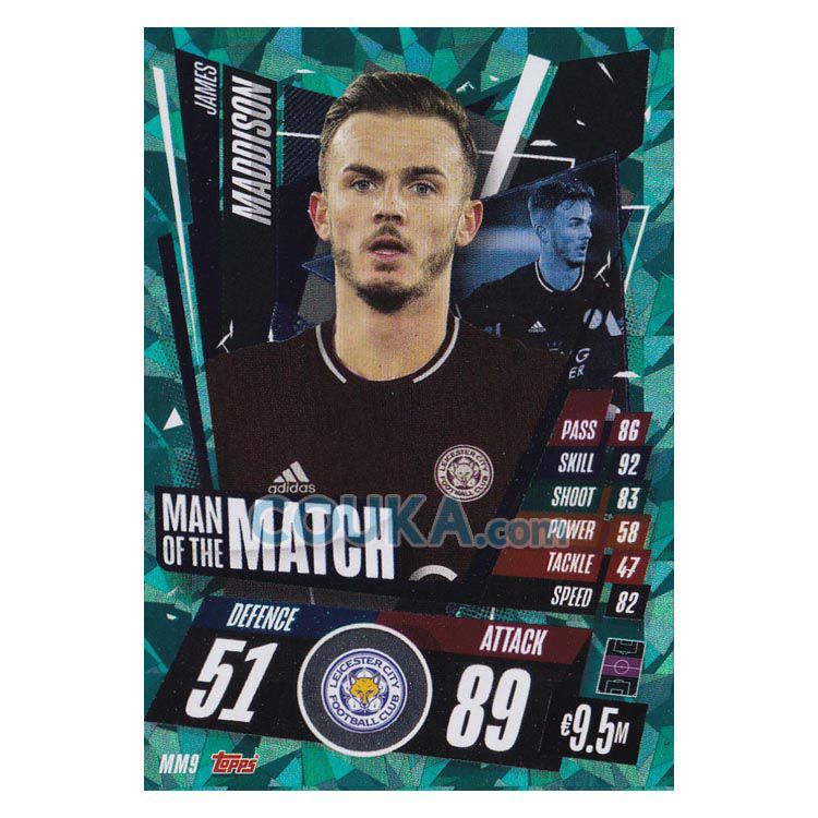 NUKOU寄售 2020-2021 Topps UEFA Champions League UEFACL Match Attax Football Soccer Card #MM9 James Maddison Leicester City Man of the Match欧冠球星卡 麦迪逊 莱斯特城 MOTM MOM 发布相似商品