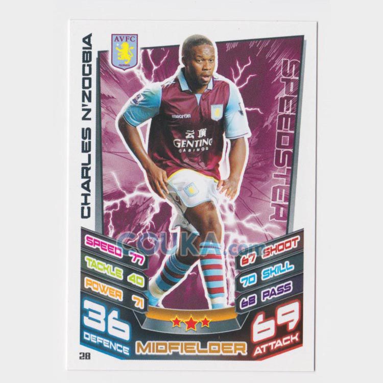 2012-2013 Topps EPL English Premier League Match Attax Football Soccer Card #28 Charles N'Zogbia Base Aston Villa英超球星卡 查尔斯 恩佐比亚 普卡 阿斯顿维拉