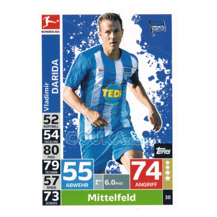 2018-2019 Topps German Fussball Bundesliga Match Attax Football Soccer Card #38 Vladimir Darida Base Hertha Berlin德甲球星卡 达里达 普卡 柏林赫塔