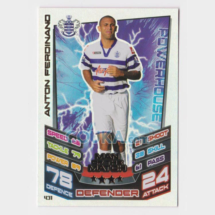 2012-2013 Topps EPL English Premier League Match Attax Football Soccer Card #431 Anton Ferdinand Man Of The Match MOTM MOM Queens Park Rangers英超球星卡 安顿 费迪南德 MOM MOTM特卡 女王公园巡游者 发布相似商品