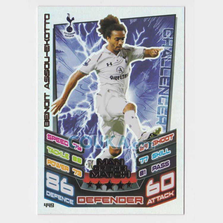2012-2013 Topps EPL English Premier League Match Attax Football Soccer Card #449 Benoit Assou-Ekotto Man Of The Match MOTM MOM Tottenham Hotspur英超球星卡 贝诺特 埃苏-埃科托 MOM MOTM特卡 托特纳姆热刺 发布相似商品