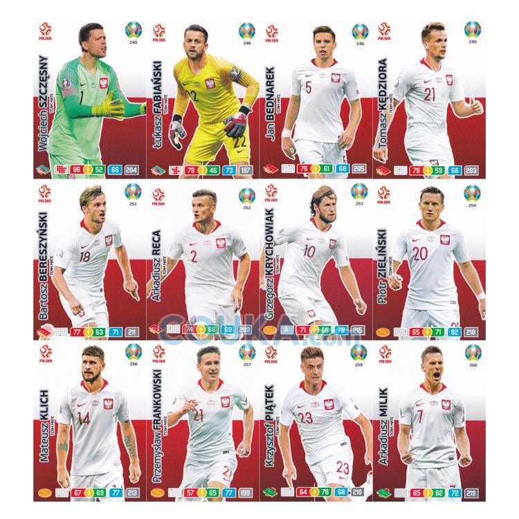2020 Panini UEFA Euro Cup Preview Adrenalyn XL Football Soccer Card Base Set Poland 12 CARDS Wojciech Szczesny/Lukasz Fabianski/Jan Bednarek/Tomasz Kedziora/Bartosz Bereszynski/Arkadiusz Reca/Grzegorz Krychowiak/Piotr Zielinski/Mateusz Klich/Przemyslaw Frankowski/Krzysztof Piatek/Arkadiusz Milik 帕尼尼欧洲杯球星卡 波兰 12张 普卡 套卡 什琴斯尼/法比安斯基/贝德纳雷克/科德奇奥拉/巴托斯 贝雷辛内斯基/雷卡/科雷霍维亚克/泽林斯基/马特乌什 克利赫/弗兰科斯基/克里斯托弗 皮扬特克/米利克 发布相似商品