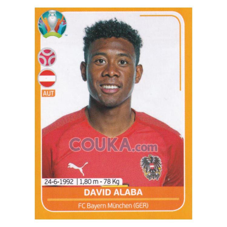 2020 Panini UEFA Euro Cup Preview 528 version Football Soccer Sticker AUT8 David Alaba Austria 帕尼尼欧洲杯球星贴纸 阿拉巴 奥地利