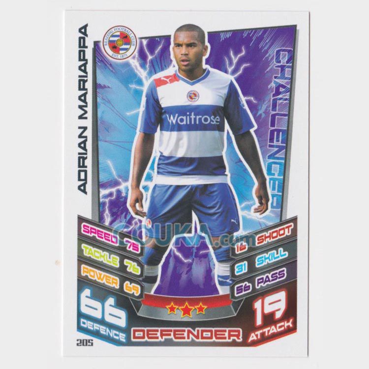 2012-2013 Topps EPL English Premier League Match Attax Football Soccer Card #205 Andrian Mariappa Base Reading英超球星卡 阿德里安 马里亚帕 普卡 雷丁