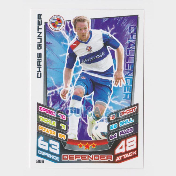 2012-2013 Topps EPL English Premier League Match Attax Football Soccer Card #206 Chris Gunter Base Reading英超球星卡 克里斯 冈特 普卡 雷丁