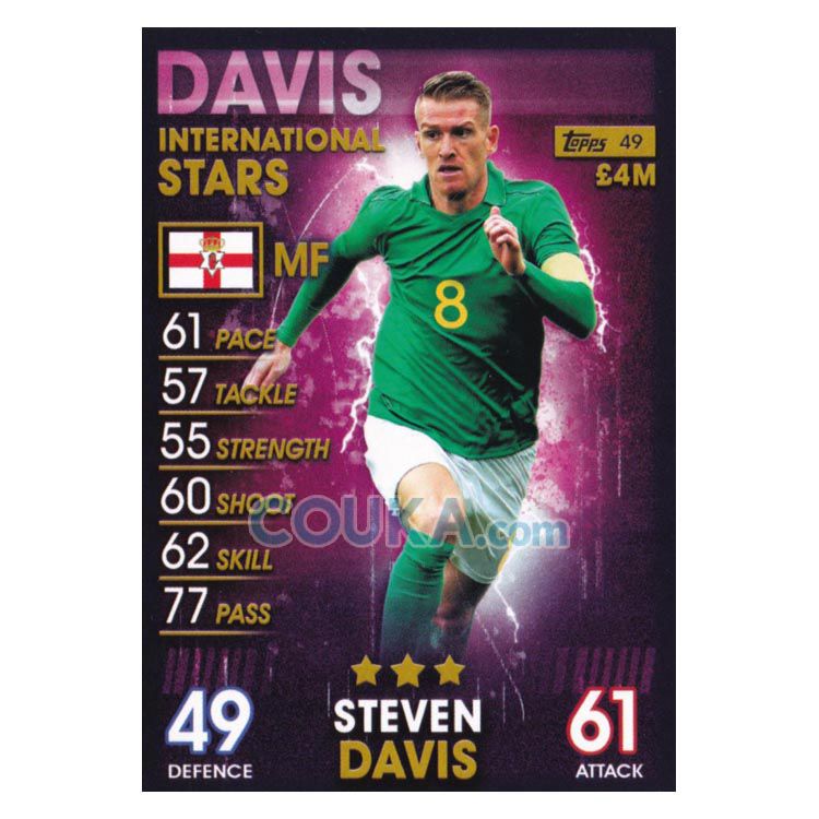 2018-2019 Topps Match Attax 101 Football Soccer Card #49 Steven Davis International Star Northern Ireland Topps101球星卡 史蒂文 戴维斯 国际巨星 北爱尔兰