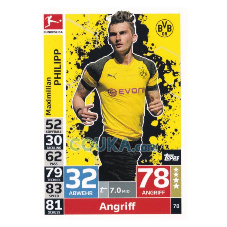 2018-2019 Topps German Fussball Bundesliga Match Attax Football Soccer Card #78 Maximilian Philipp Base Borussia Dortmund德甲球星卡 马克西米利安 菲利普 普卡 多特蒙德 发布相似商品