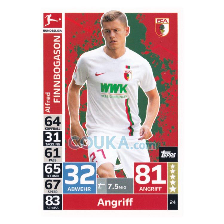2018-2019 Topps German Fussball Bundesliga Match Attax Football Soccer Card #24 Alfred Finnbogason Base Augsburg德甲球星卡 芬博加松 普卡 奥格斯堡
