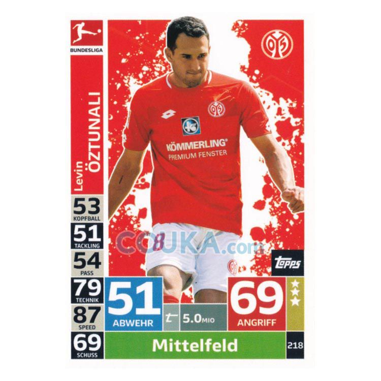 2018-2019 Topps German Fussball Bundesliga Match Attax Football Soccer Card #218 Levin Oztunali Base FSV Mainz 05德甲球星卡 厄兹图纳勒 普卡 美因茨
