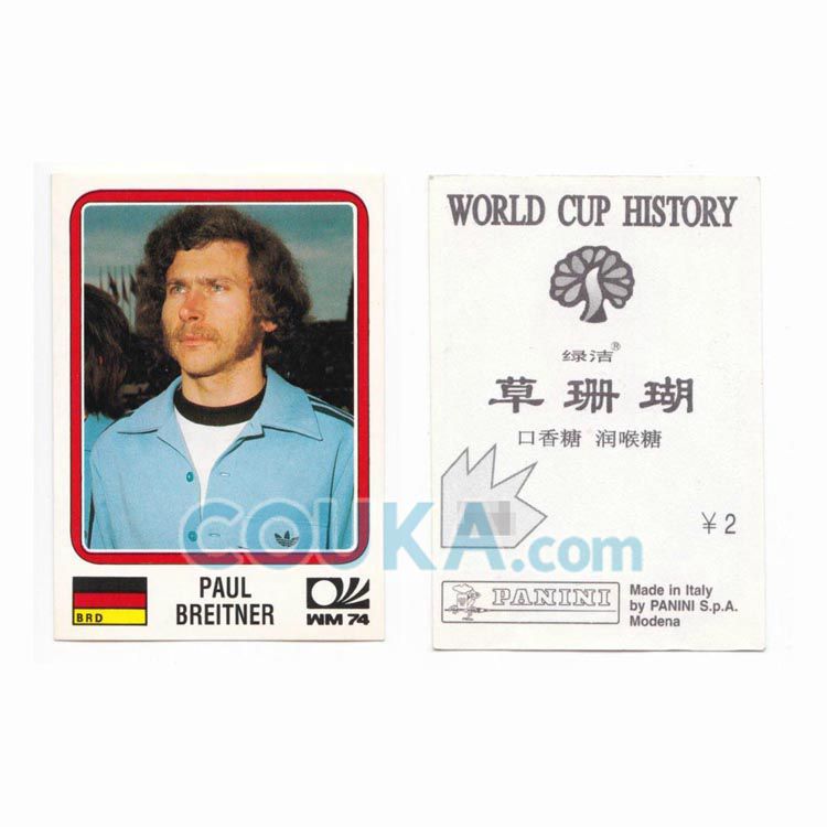 Panini World Cup History Chinese Edition Football Soccer Sticker #61 Paul Breitner BRD 帕尼尼世界杯历史 草珊瑚 中文版球星贴纸 布莱特纳 西德