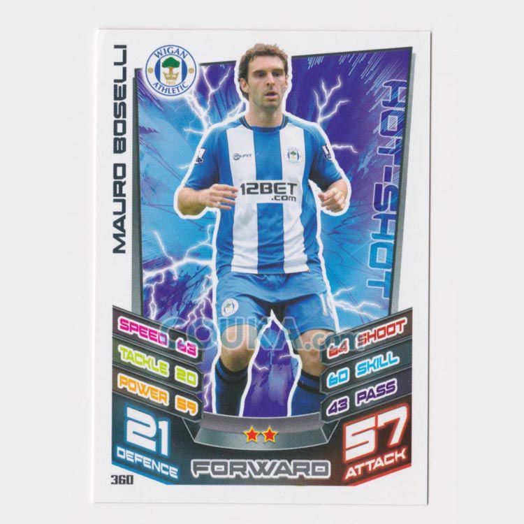 2012-2013 Topps EPL English Premier League Match Attax Football Soccer Card #360 Maurio Boselli Base Wigan Athletic英超球星卡 毛罗 博塞利 普卡 维冈竞技