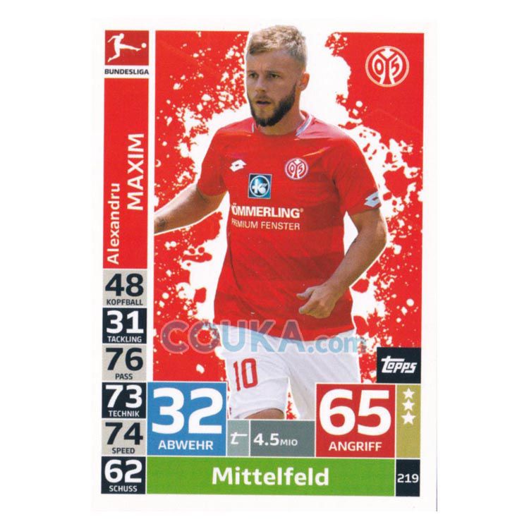2018-2019 Topps German Fussball Bundesliga Match Attax Football Soccer Card #219 Alexandru Maxim Base FSV Mainz 05德甲球星卡 马克西姆 普卡 美因茨