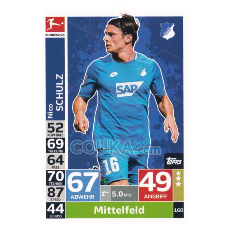 2018-2019 Topps German Fussball Bundesliga Match Attax Football Soccer Card #160 Nico Schulz Base TSG 1899 Hoffenheim德甲球星卡 舒尔茨 普卡 霍芬海姆