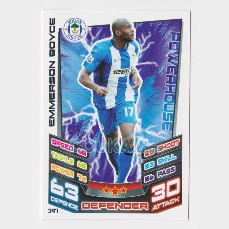 2012-2013 Topps EPL English Premier League Match Attax Football Soccer Card #347 Emmerson Boyce Base Wigan Athletic英超球星卡 埃默森 博伊斯 普卡 维冈竞技