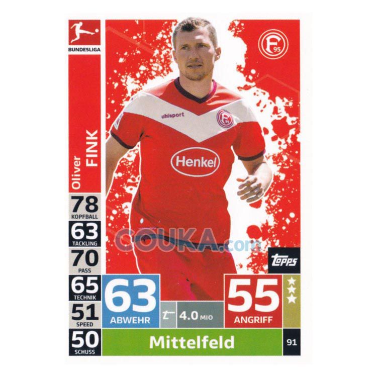 2018-2019 Topps German Fussball Bundesliga Match Attax Football Soccer Card #91 Oliver Fink Base Fortuna Dusseldorf德甲球星卡 芬克 普卡 杜塞尔多夫