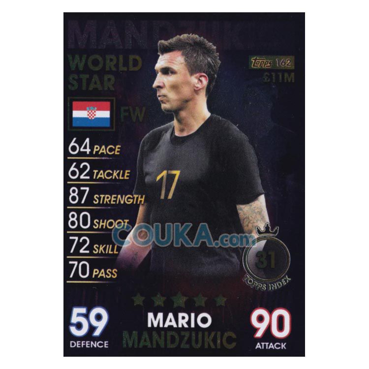 2018-2019 Topps Match Attax 101 Football Soccer Card #162 Mario Mandzukic World Stars Croatia Topps101球星卡 曼朱基齐 世界巨星 克罗地亚