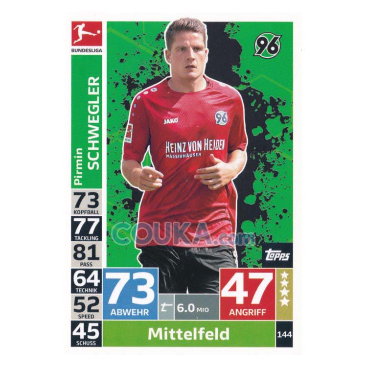 2018-2019 Topps German Fussball Bundesliga Match Attax Football Soccer Card #144 Pirmin Schwegler Base Hannover 96德甲球星卡 施韦格勒 普卡 汉诺威96