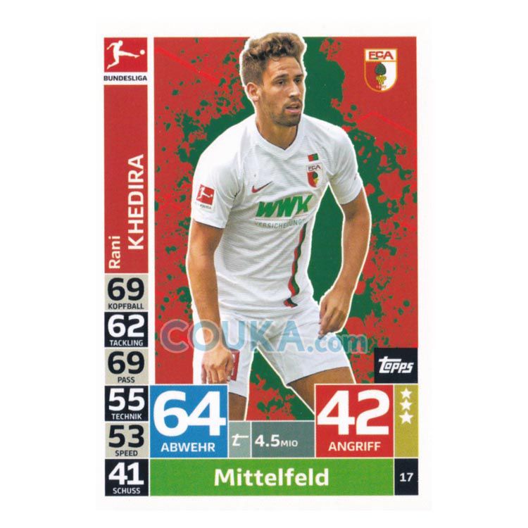 2018-2019 Topps German Fussball Bundesliga Match Attax Football Soccer Card #17 Rani Khedira Base Augsburg德甲球星卡 赫迪拉 普卡 奥格斯堡
