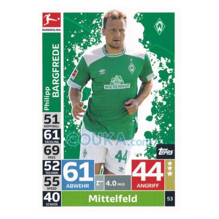 2018-2019 Topps German Fussball Bundesliga Match Attax Football Soccer Card #53 Philipp Bargfrede Base Werder Bremen德甲球星卡 巴格弗雷德 普卡 云达不莱梅