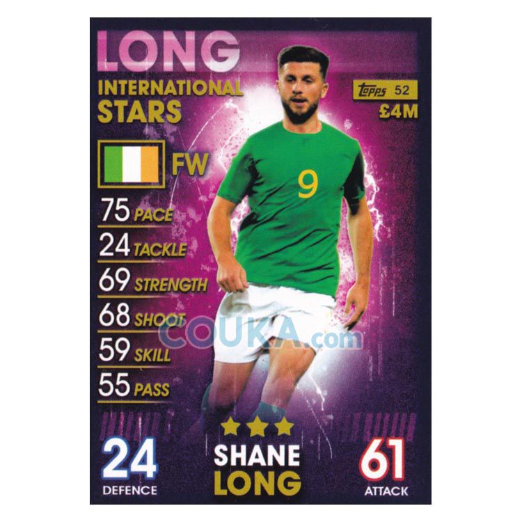 2018-2019 Topps Match Attax 101 Football Soccer Card #52 Shane Long International Star Ireland Topps101球星卡 肖恩 朗 国际巨星 爱尔兰
