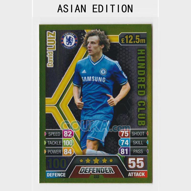 2013-2014 Topps EPL English Premier League Match Attax Asian edition Football Soccer Card #222 David Luiz 100 Club Hundred Club Chelsea英超 亚太版球星卡 大卫 路易斯 100Club 切尔西 发布相似商品
