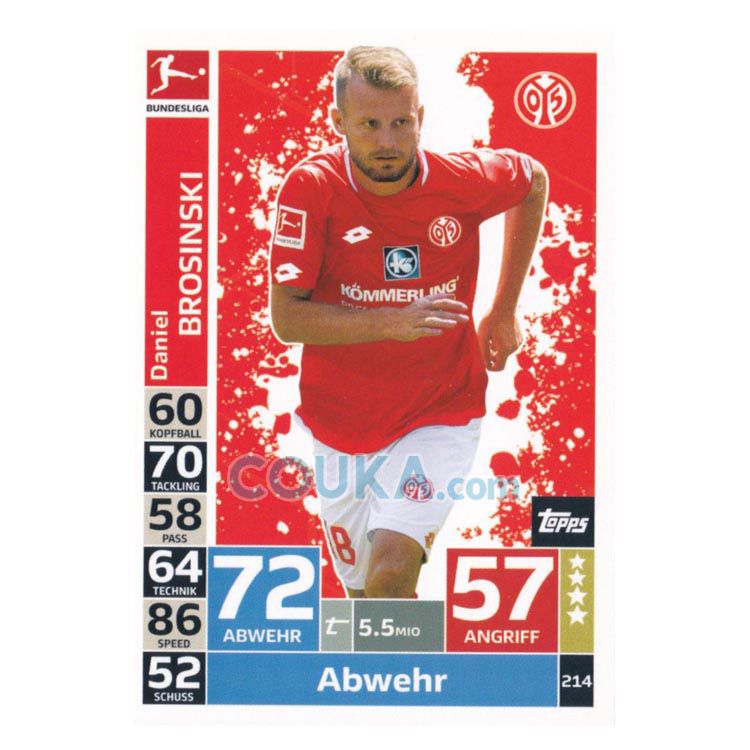 2018-2019 Topps German Fussball Bundesliga Match Attax Football Soccer Card #214 Daniel Brosinski Base FSV Mainz 05德甲球星卡 布罗辛斯基 普卡 美因茨