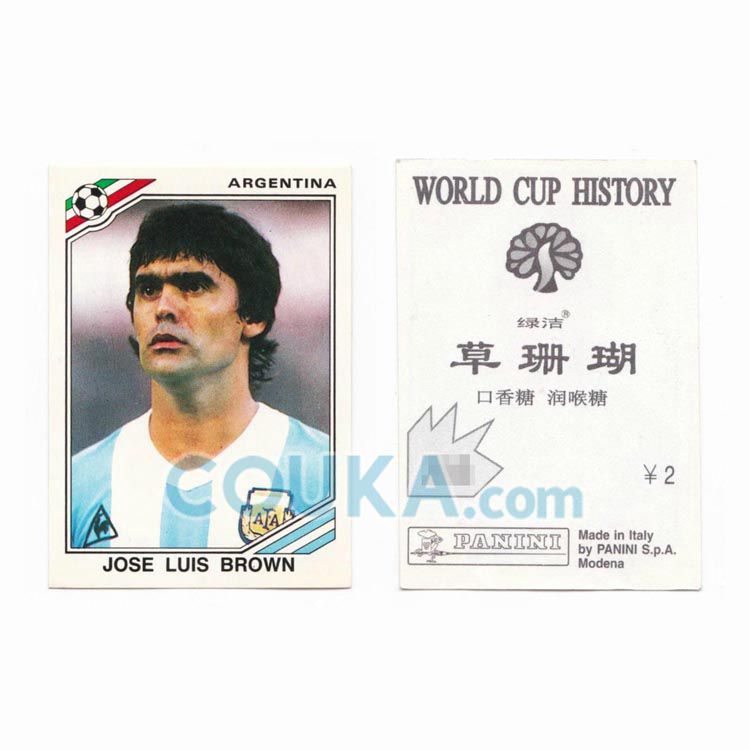 Panini World Cup History Chinese Edition Football Soccer Sticker #165 Jose Luis Brown Argentina 帕尼尼世界杯历史 草珊瑚 中文版球星贴纸 何塞 布朗 阿根廷