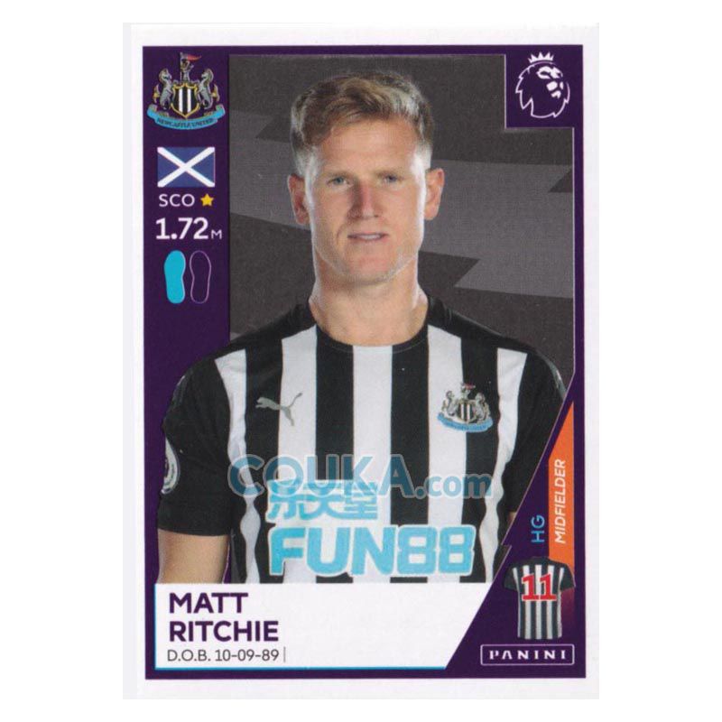 2020-2021 Panini EPL English Premier League Football Soccer Sticker #451 Matt Ritchie Newcastle United 帕尼尼英超球星贴纸 马特 里奇 纽卡斯尔联
