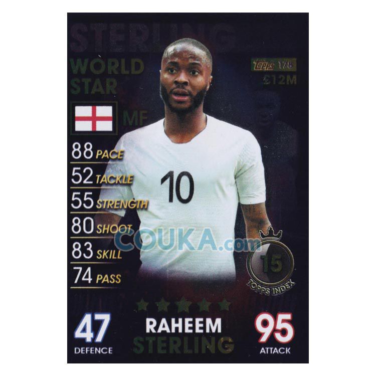 2018-2019 Topps Match Attax 101 Football Soccer Card #178 Raheem Sterling World Stars England Topps101球星卡 斯特林 世界巨星 英格兰